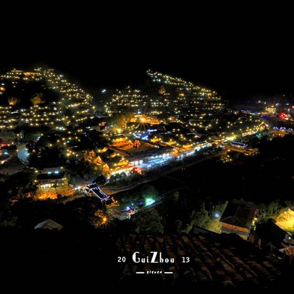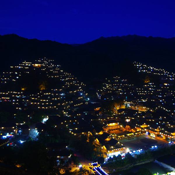 黎明,一排排彩色的烟火直冲夜空,点亮了远方的黑暗,也惊醒了熟睡中的西江。沿着蜿蜒的石阶走到了山上的观景台,在观景台上,一排排摄影爱好者早已架着长枪短炮对着山下的千户苗寨,就像一个个狙击手在等待最好的时机,按下快门,定格瞬间。清晨的苗寨宁静安详,远处的薄雾如同一层白纱朦胧了山峦,也朦胧了鳞次栉比的苗家木屋,昨夜入住的游人渐渐的涌上街头,新一天忙碌便已开始。回到西岸的观景台,傍晚的暖阳驱走了阴霾,将光辉缓缓地洒在对面的苗家寨子上,就像苗家阿妈抚摸她的孩子般温柔舒适,那样温馨的光线让大家都很兴奋,都忙着定格此刻的温暖……渐渐地夕阳的温度被夜色的深沉冷却,山下的万家灯火陆续的点亮了山的轮廓,又一次温暖了整座寨子。表演场的声乐和霓虹将它装扮成夜色里最耀眼的那一颗,人们靠在山的护栏边远远的观看着对面的演出,也欣赏着让人心醉的夜景。每到黄昏时分,千家万户就亮起了灯。随着天色越来越暗,西江千户苗寨变成了灯的海洋,可以看到苗寨呈现那牛头的形状。为使游客更好地观赏西江千户苗寨夜景,景区在路边修建了观景台,还开通了观光车。TIPS:【西江千户苗寨】
