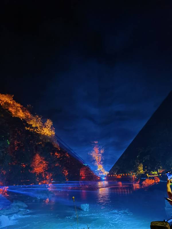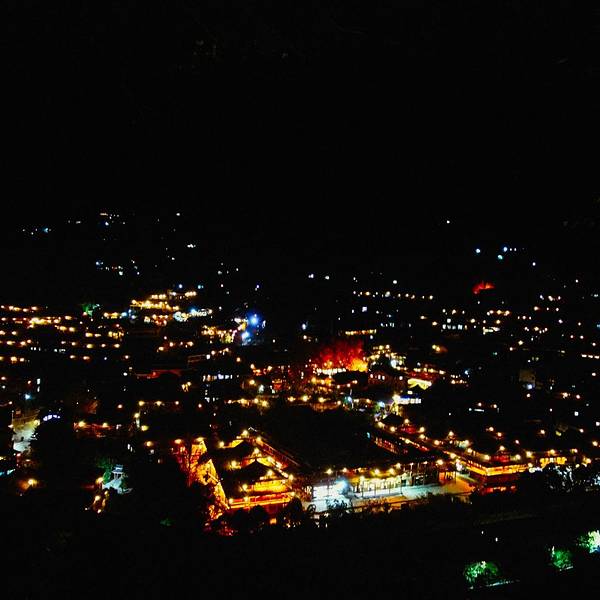 大概也是淡季的原因,苗寨的灯火并没有全部闪亮起来,跟宣传照片上见到的还是有些差距的。这个寨子相比我父辈们所在的小山村确实还是大气了很多,足足占满了两个山头。观景台其实并不是什么很好的观景场所,台子正前方就有一幢楼非常挡视线,一点都不痛快。而且不知哪里涌出来茫茫多的游客拍照拍的不亦乐乎,只好赶紧往下走。想起昨天晚上,一群人喝醉了酒搁那搂搂抱抱,同样也是赶紧往下走不愿停留。
