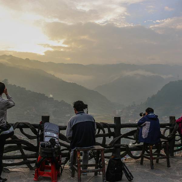 往下走上一段后风景才豁然开朗,可以纵览苗寨全景而且非常漂亮。配上几缕袅袅炊烟,再盖着一层薄薄的晨雾,真的是太棒了。每到这种地方我都很想换个相机,手里这个就觉得力不从心。一早就有换相机的想法,但是这个大坑总不想往里跳,总觉得应该彻底发挥出这个的潜力才好。 展开