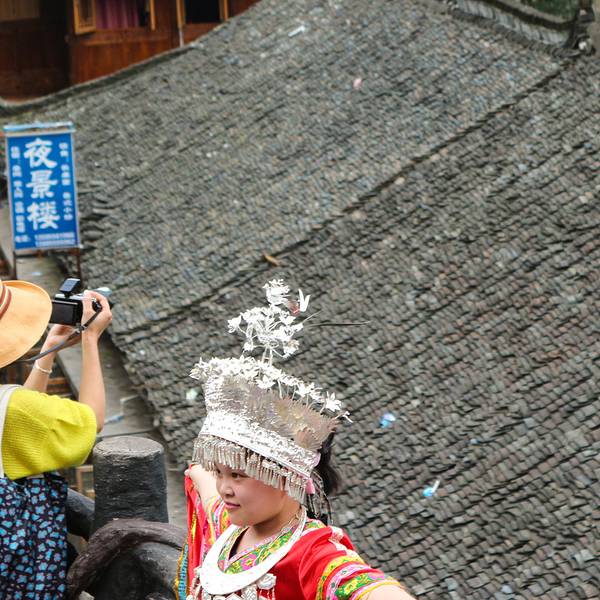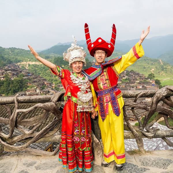 整个观景台是最值得合影留念的地方了,视野开阔,景色壮丽,可以真正的体会到苗寨的风格。观景台有苗族服饰可以租,价格虽然不贵就是不太干净,夏天不建议穿,甚至也可以直接租一个苗妹子一起合影。