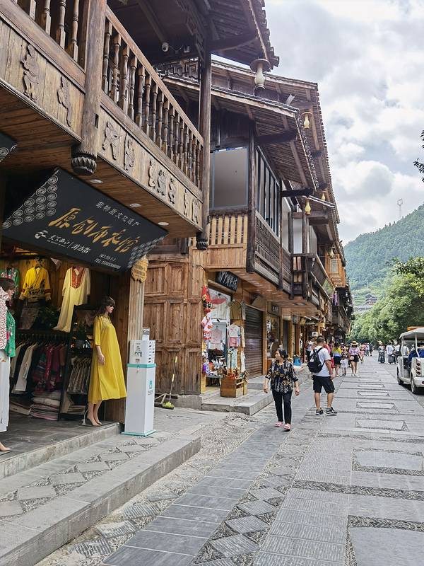 【景区概况】寨门口后期重建的痕迹非常明显,走进去的第一感觉商业化简直浓郁到了极致,周围全是商店和旅馆。不过就是商家比较聪明,门面装饰不是民族风就是清新文艺范,不过也大多千篇一律,看多了也就感觉进了个苗寨风格的购物广场。