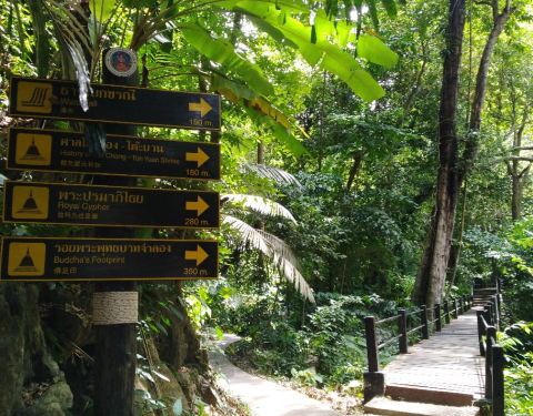 丹波寇罗尼国家公园甲米镇大约40公里的车程,位于路克湾小镇附近。公园占地121平方公里,建于1991年,岛屿、红树林、和石灰岩洞让这里充满了大自然的魅力。在蓊郁荿密的热带森林中,青翠的山峦与碎石铺成的小径在崖下蜿蜒,从洞穴流泻出翡翠般绿色的小溪贯穿整座公园,静谧怡人。七处洞穴这里保存有大面积的岛屿、红树林和石灰石洞穴。公园里至少有七处洞穴,其中较重要的是Tham Pee Hua Toe,因洞穴里曾发现过一个巨大的人类头骨而闻,并且洞穴的墙壁上还有2000到3000年历史的壁画。从路克湾小镇以南7公里处的Ban Bho Tho码头乘坐长尾船或者海上皮划艇都可以达到该洞穴。环境清幽的野餐地公园总部在路克湾小镇的南部,是一个非常受欢迎的野餐汇集地。那里有一条1.8公里的小径,连接起潺潺的溪流和有瀑布连接的翠绿池塘——莲花池。由岩石顶上飞溅而下的瀑布,溪流从洞穴流出,加上周围的热带花草树木,形成了美丽的环境与氛围。另外,这里也是许多越战电影取景拍摄的地点。