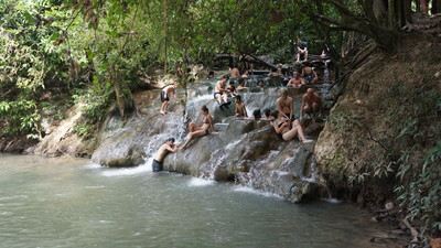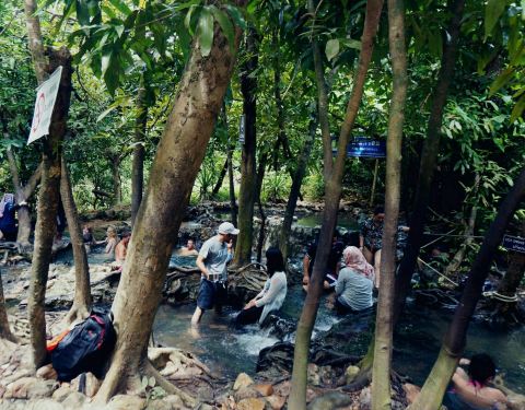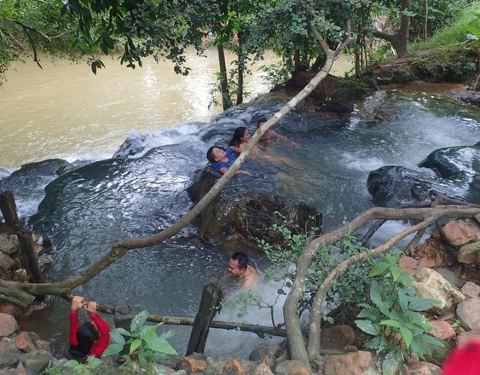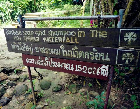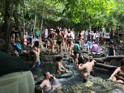...到达了空统温泉瀑布,这个地方非常小,请自行携带泳衣和毛巾,水温很暖和,不过这个温泉可能是人造的早上七点左右我们离开了度假村,乘坐汽车大概八点到达了空统温泉瀑布,这个地方非常小,请自行携带泳衣和毛巾,水温很暖和,不过这个温泉可能是人造的。