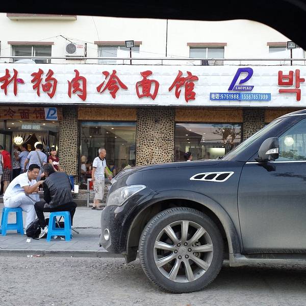 由于午饭是对付的!晚饭,决定去大众点评排名第一位的:老朴狗肉冷面馆 谭师傅将我们带到饭店门口,还热情的进店帮我们打探有没有位置~非常热情~~ 由于都是慕名而来,饭店非常火爆,现成的位置就不用指望了,等吧!40分钟等到位置,天已黑~~