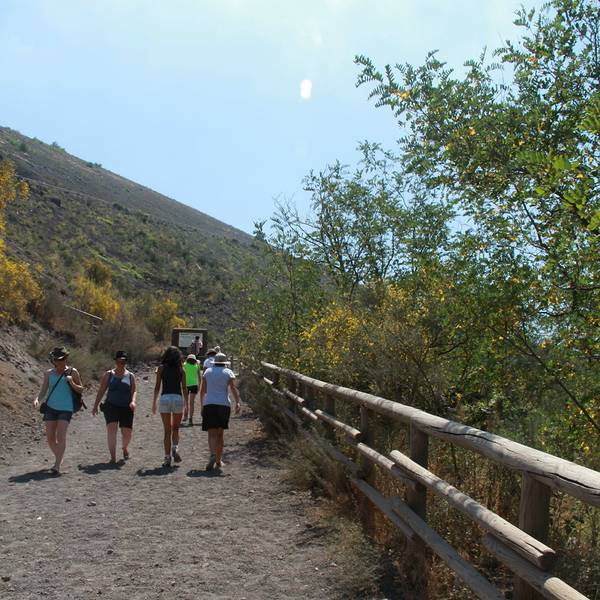 维苏威火山是亚平宁半岛的活火山。它由亚欧版块和非洲板块相互碰撞而成,曾经在公元79年大喷发时摧毁了庞贝古城,目前处于休眠状态。这座火山曾经喷发过很多次,因此它也是世界上危险的火山之一。 你可以徒步攀登维苏威火山,沿着火山石的坡道抵达火山口,大约20-30分钟就可以上到顶去看火山口。因为海拔较高,山口的风速较大,登顶时需要手扶栏杆前行。 从庞贝到维苏威火山有专门的大巴,行程约一个小时,庞贝火车站门口就有去维苏威火山的售票处,发车点也在火车站门口。大巴的班次不是很多,一般正点发一趟车。汽车穿过维苏威国家森林公园后,停在半山腰,还要换乘专门用来爬坡的车子,之后再换徒步,沿手扶栏杆攀登至火山口。