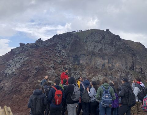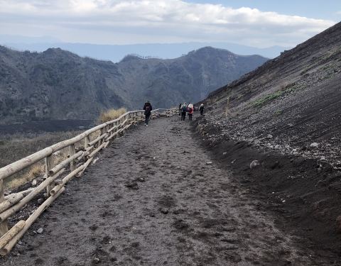 可攀登参观壮观的火山口和山脚的庞贝古城。