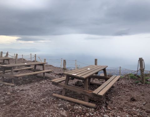 到了半山,开始下雨,还是越来越大的那种,火山下的风景雾茫茫一片,只能看到个轮廓从那不勒斯火车站出发,十几分钟到赫兰尼姆遗址站下来,有大巴往返火山,包含门票,20欧/人,开过去要40分钟左右,司机给我们90分钟,时间还是挺充裕的; 上山的路满陡的,爬了一会就喘不上气了,平时严重缺乏锻...从那不勒斯火车站出发,十几分钟到赫兰尼姆遗址站下来,有大巴往返火山,包含门票,20欧/人,开过去要40分钟左右,司机给我们90分钟,时间还是挺充裕的; 上山的路满陡的,爬了一会就喘不上气了,平时严重缺乏锻炼啊; 到了半山,开始下雨,还是越来越大的那种,火山下的风景雾茫茫一片,只能看到个轮廓; 再往上有个火山坑,大家都在那里拍拍拍,随便按了几张就闪了,山上温度太低,又冷又下雨☔️,只想快点下山,不太顺利的火山之行啊; 这里完全️任何手机信号,开出山区后,老老远才正常; 这里的纪念品做的都挺粗糙的,价格也不便宜,对了,上厕所在商店里,需要任意消费,店员才让你上,为了方便下,只能买瓶饮料了 展开