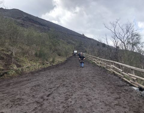 建议大家要穿旅游鞋最好是防滑的去维苏威,因为砂土有点打滑,我虽然穿了旅游鞋,下山还是滑了几下,...爬到接近山顶的地方,这里土壤变得肥沃,是火山特有的红土。建议大家要穿旅游鞋最好是防滑的去维苏威,因为砂土有点打滑,我虽然穿了旅游鞋,下山还是滑了几下,差点摔跤。