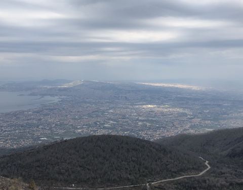 我乘坐了旅游巴士参观了维苏威火山,大约开上山2/3的路程后下了车。俯瞰那不勒斯迷人的景致我乘坐了旅游巴士参观了维苏威火山,大约开上山2/3的路程后下了车。蒸汽/烟不断从地下冒出来,让你感觉很快会再次爆发。每2000年维苏威火山爆发一次,如果这是真的那距离再次喷发不远了。俯瞰那不勒斯迷人的景致。