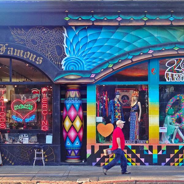 对于嬉皮士来说,海德区(Haight - Ashbury)可是圣地。这里是 20世纪 60 年代嬉皮士的发源地,嬉皮热潮也在这里达到巅峰。那时的年轻人从各地聚集在此,唱歌狂欢,抗议传统,推崇他们自己的生活哲学与主义。现在的海德区,老一代嬉皮士已经不在,但传遍世界的“爱与和平”的口号和标志还在这里。还记得嬉皮士们的奇装异服吗?如今,在这里的二手市场你依然能看到一间间标新立异的商店、墙上奇幻的彩色涂鸦、挂在店面的皮衣皮裤以及手染的 T 恤和手工制成的挂饰。几步之遥就有嬉皮用品店和二手唱片店,作为最早起家的 Pipe Dreams,它还坚持着嬉皮风格特有的桀骜不驯。Pipe Dreams 主销烟斗(Pipe), 60 年代盛行的烟斗被它保留至今。就算你不抽烟,望着整面墙琳琅满目的烟斗,也会想收藏一只。