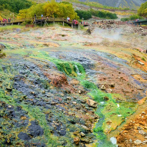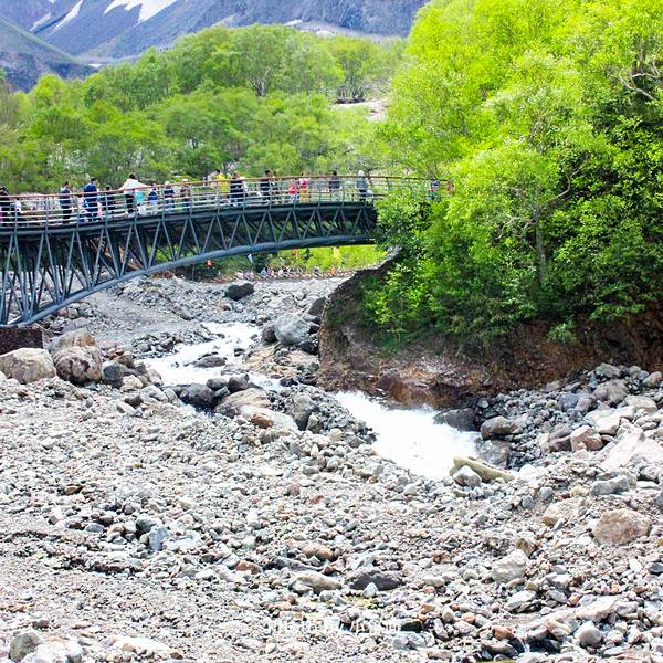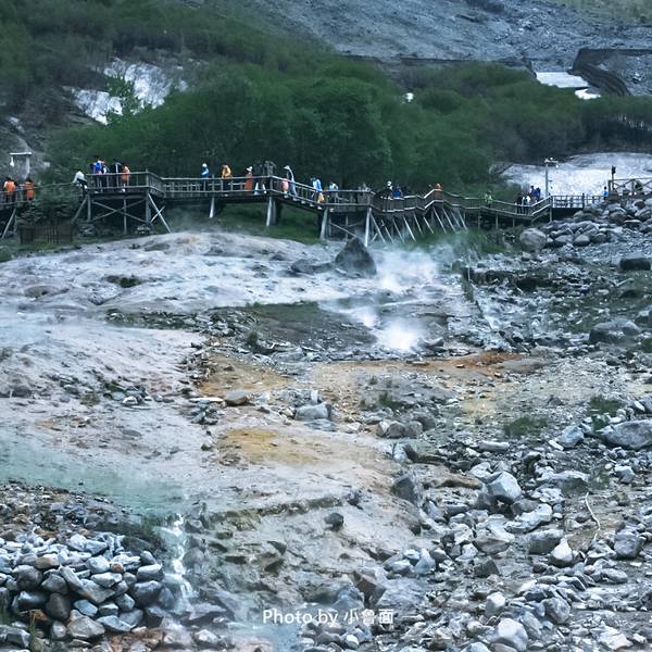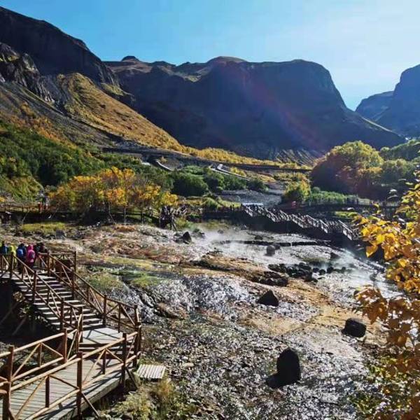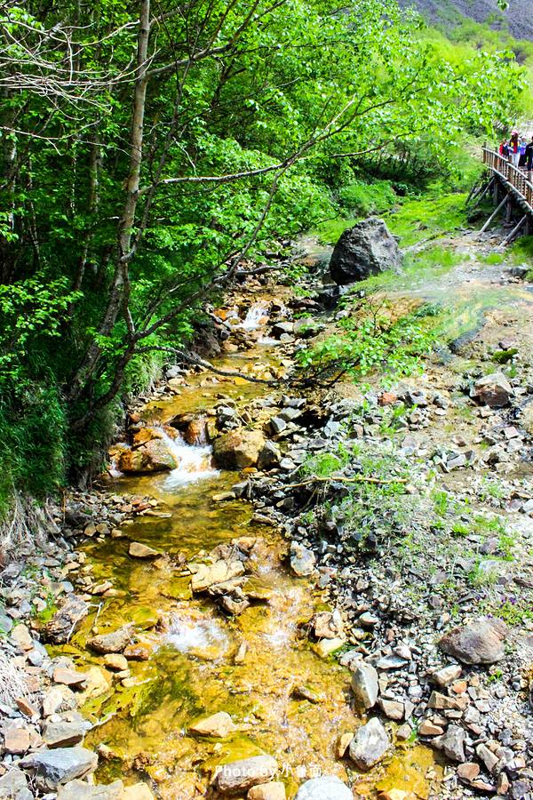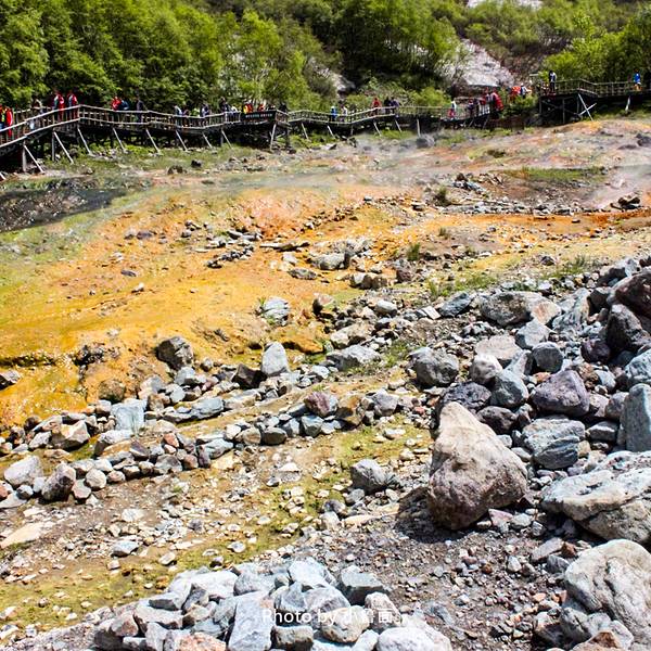 观光车下车处离瀑布较远,途经温泉处、一段斜坡和木头栈道,做好步行体力准备。