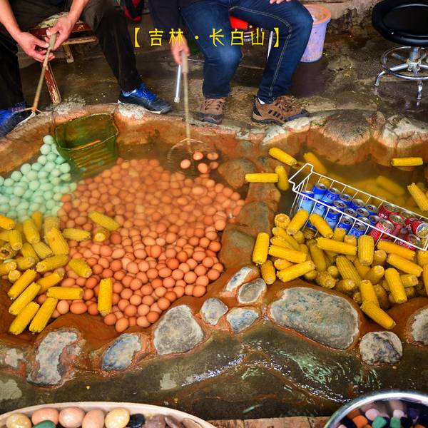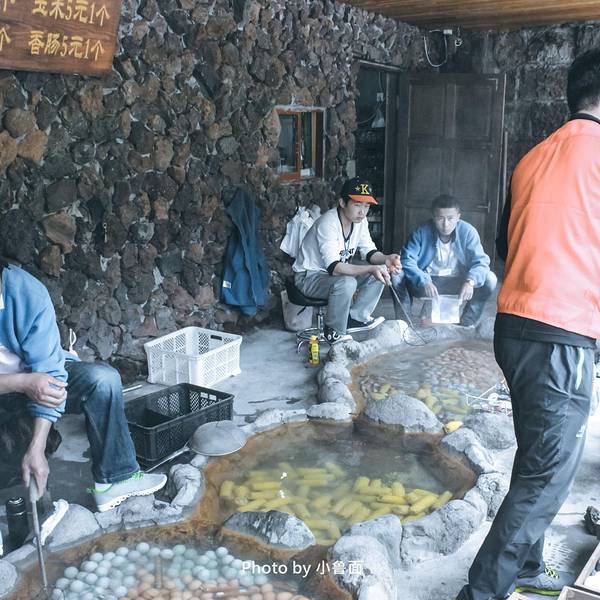 传说中的温泉水煮鸡蛋,还有鸭蛋、玉米等。倒是旁边一直在施工,好像要重新修一条栈道。