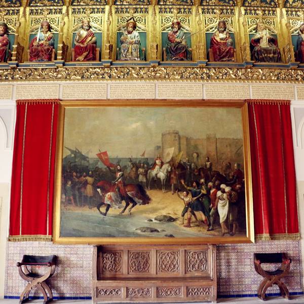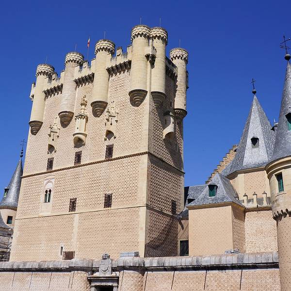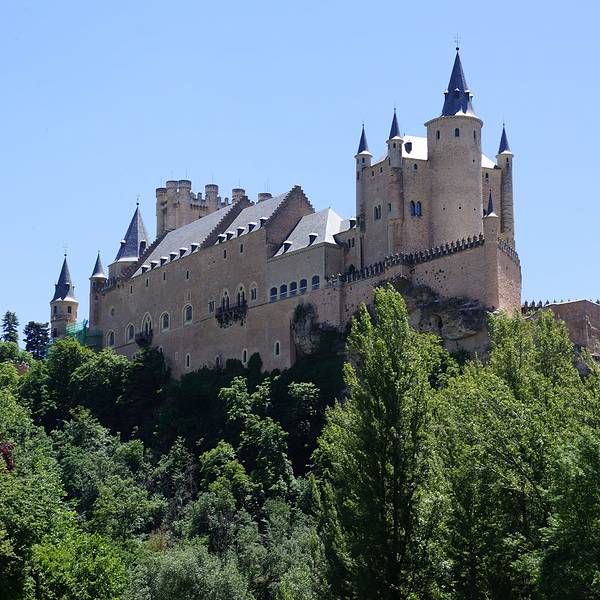 位于西班牙塞哥维亚城西端,城堡所处的位置正好是当时西班牙北部城市卡斯提尔(Castile)的要冲上,临崖而建的塞哥维亚城堡,因战略考虑,拥有绝佳的视野,入口还有10多米深的护城河,以防范敌人攻入。 在罗马统治时期,该城堡不断被加固,城堡的名字取自当地地名。塞戈维亚城堡在13- 14世纪又进行了一次扩建,但是在1862年,整个建筑被大火烧毁,现在你看到的美丽城堡是1862年活在后在原址上建造的。亮点包括Sala de las Pinas, 此建筑的天花板上装饰着由392个凤梨形状的钟乳石排列而成的饰品。国王厅Sala de Reyes 内的石柱上有一幅三维立体雕刻作品讲述了西班牙失地收复运动中52位国王浴血奋战的场面。 迪斯尼动画片《睡美人》中的城堡以此城堡原型。