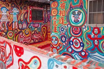 小小的眷村宛如一个充满童趣的画中世界,墙壁和地面上全是俏皮的卡通人物、小动物和小花,色彩浓烈大胆彩虹眷村不大,转来转去就是几间平房,墙壁、地面被一位老爷爷全部画上彩画,色彩极其丰富,拍照好地方。小小的眷村宛如一个充满童趣的画中世界,墙壁和地面上全是俏皮的卡通人物、小动物和小花,色彩浓烈大胆。