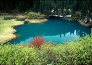 最先看到的钙化池就是迎宾池,区域不是很大,水色异常美丽,落于群山之间,与四周的彩林呼应,迎来送...进入黄龙风景区,最先看到的钙化池就是迎宾池,区域不是很大,水色异常美丽,落于群山之间,与四周的彩林呼应,迎来送往各地的宾客游人。