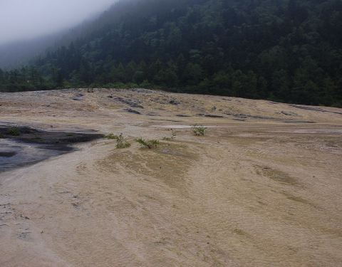 金沙铺地是黄龙风景区黄龙主沟的一个很漂亮的景点,金沙滩的钙华流下泻形成了一段钙化长滩,有点类似...金沙铺地是黄龙风景区黄龙主沟的一个很漂亮的景点,金沙滩的钙华流下泻形成了一段钙化长滩,有点类似于流石流流下来,又缓缓地凝固了,很壮观。