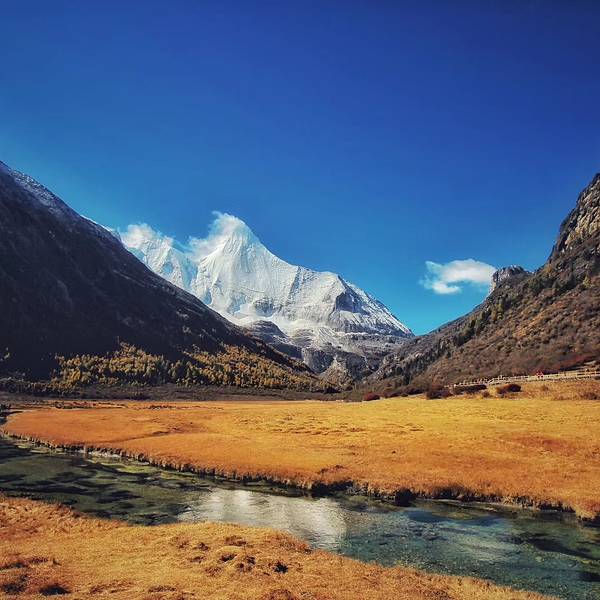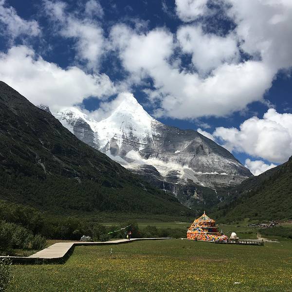 金骆驼 稻城亚丁-四季尽美“我希望有个如你一般的人,如山间清爽的风,如古城温暖的光。从清晨到夜晚,由山野到书房。只要最后是你,就好。”选自《从你的全世界路过》,让我们知道了有一种美,叫“稻城亚丁”,就如同作者张嘉佳手里的笔...“我希望有个如你一般的人,如山间清爽的风,如古城温暖的光。从清晨到夜晚,由山野到书房。只要最后是你,就好。”选自《从你的全世界路过》,让我们知道了有一种美,叫“稻城亚丁”,就如同作者张嘉佳手里的笔写的那样“我们现在经历的事过后看都是故事,故事的开头都是未知也是定数,我们会在某个不知情的情况下又恰好的机会和时机遇上一个人,却总是无法预料遇上之后的结局。而后故事的结尾却是像一株花一样,开了两朵却互不相识”。稻城亚丁的美是不分季节的,每一个季节就像在上演一场视觉盛宴,春天的生机勃勃,夏天的五彩斑斓,秋天的诗意如画;冬天的银装素裹;季节的特点在稻城亚丁展现的淋漓尽致。而在这个八月里,稻城亚丁带着夏天的味道,已经慢慢的进入初秋了。人间仙境,也许莫过于此了。行走在稻城亚丁的土地上沿着一条长长的木桥,路过一片绿色的草甸,草甸的草儿渐渐的呈现出黄色,花儿还在开放着,一条小河穿过草甸,流向远方,窸窸窣窣的声音传入耳边,马儿似乎有了几分睡意,它们慵懒的趴在草甸上。看过很多驴友描述的稻城亚丁,心旷神怡,身体下地狱,眼睛上天堂。四周雪山环绕的一汪蓝色的水,有着致命的吸引力,但是给我的感觉是山总是伴随着朦胧的云雾,远远望去,云蒸霞蔚,遮蔽着山的顶端,一个祥和宁静的小镇,一群淳朴可爱的人们,独具特色的红白相间的藏式房屋,是蓝色星球上的最后一片净土,梦里的香巴拉。在稻城,徒步登上山顶是一种仪式感,是在经历了尽心竭力的跋山涉水后,产生的一种豁然开朗、酣畅淋漓的舒适感觉。此时的你,看到的是别人看不到的风景,尝到的是别人所不能触及的空气。到亚丁徒步,也是人生必体验之一。