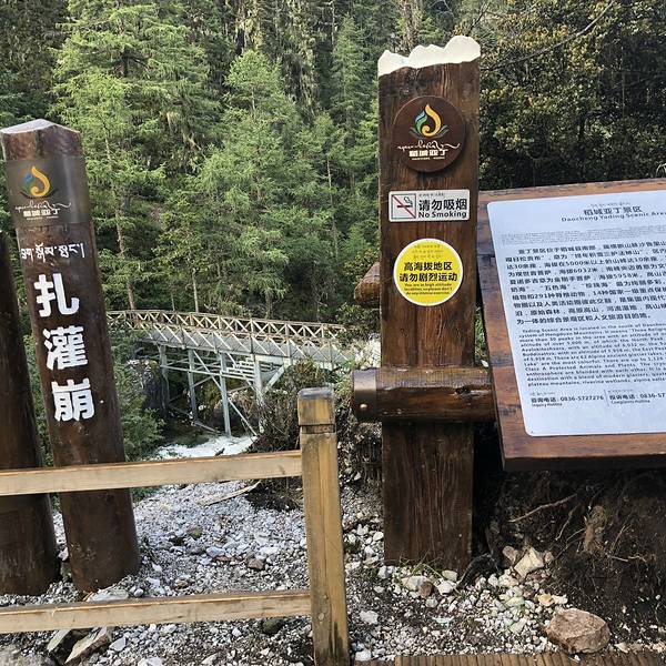 在冲古寺服务中心的位置是有岔路的,直行就是坐电瓶车去洛绒牛场的方向,右拐就是去冲古寺和珍珠海的方向。