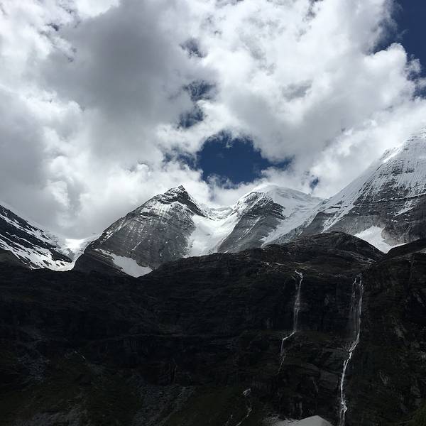 亚丁确实是一个美丽的地方,但由山下到山上天气变化很大,一会天气晴朗,阳光灿烂,越往上走变化就越大,一会阴天,一会大风大雪。