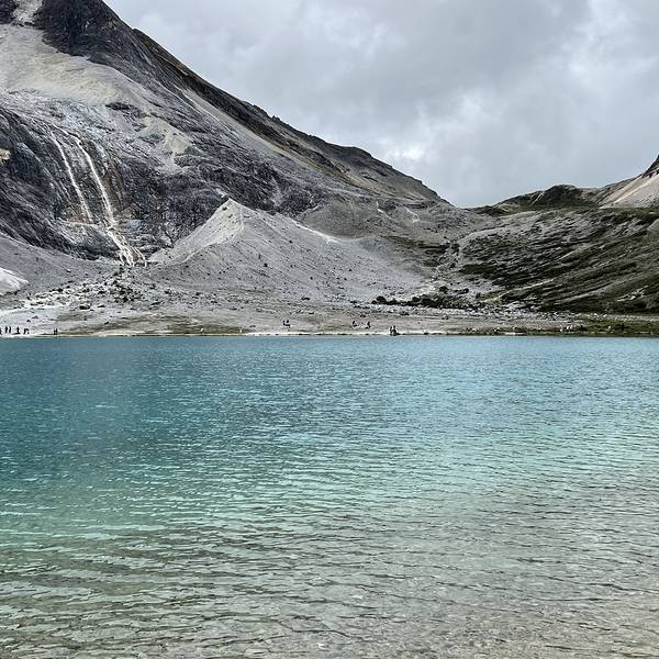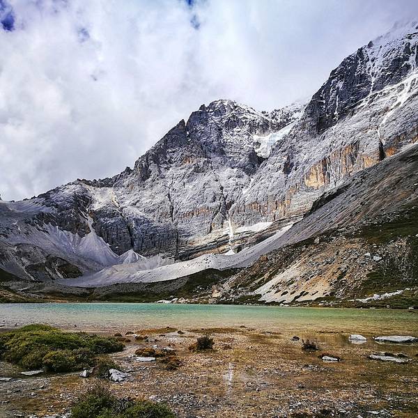 面对这壮阔的景色,欣赏的同时,忍不住会思考和感叹,感恩大自然的慷慨,她让所有生物具有生机,感叹大自然的神奇,她将所有生物赋予灵性……相较这亿万年的神山,匆匆几十年的生命简直是弹指一挥间,敬畏自然的同时,认识到自己的渺小。其实除了牛奶海和五色海,离五色海不远处还有一个小海子,叫琉璃海,浅浅的一滩,我们走的上山路线第一个看到的便是琉璃海,好一顿兴奋后发现,这个小海子并非我们的目标。五色海,又叫“登崇措”,在光的折射下会产生五种不同颜色而得名五色海。是藏区著名的圣湖,据传能“返演历史,预测未来”。主体呈蔚蓝色,海边有些碧绿,越往中心颜色越深。