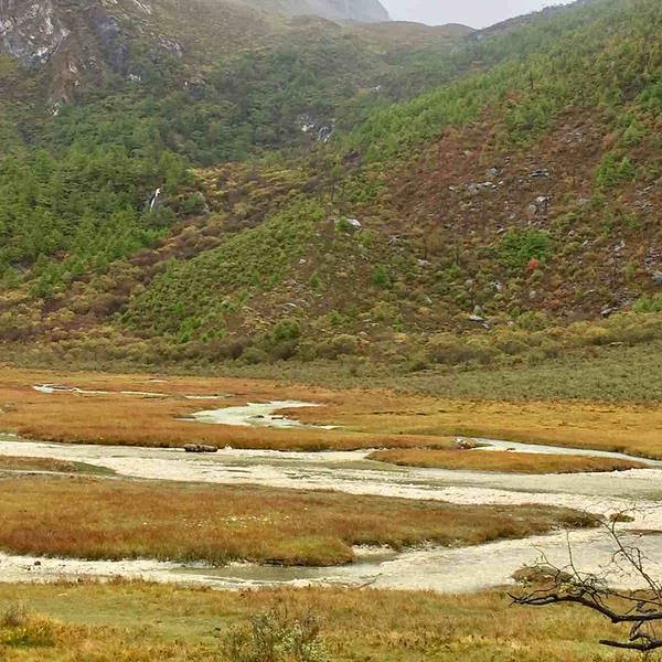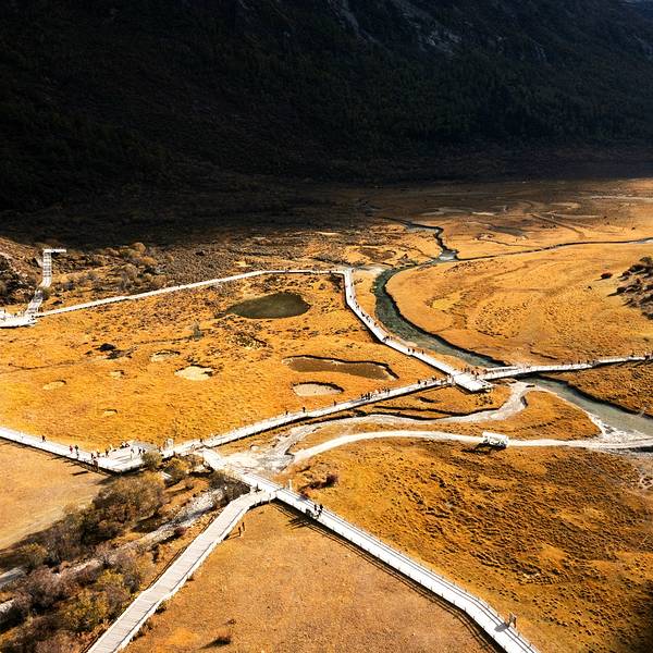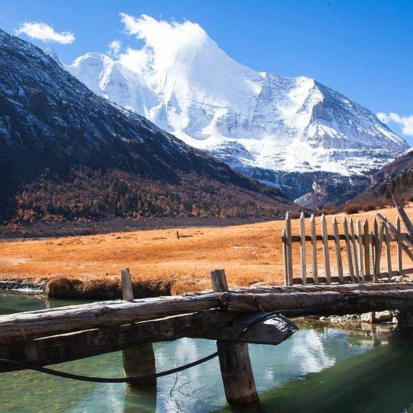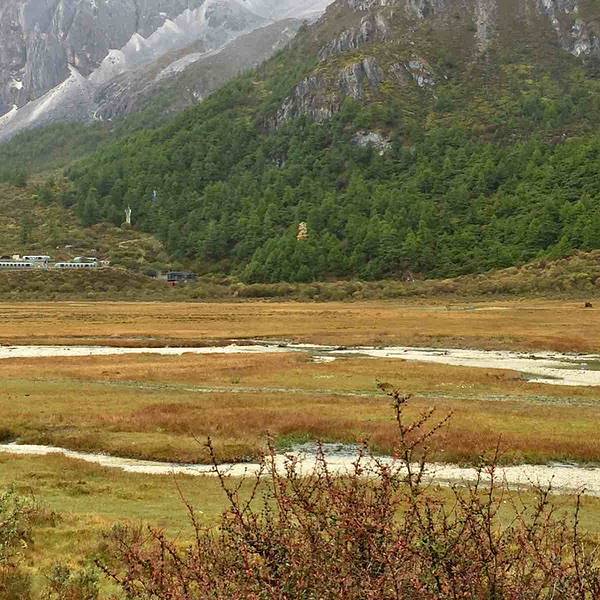 金骆驼 和木桥在一起看上去原始又美好。草也变得黄黄的,可是还是很美。这里海拔很高,也很漂亮洛绒牛场是亚丁最最大的一块草坪,也是通往牛奶海的入口。这里海拔很高,也很漂亮。