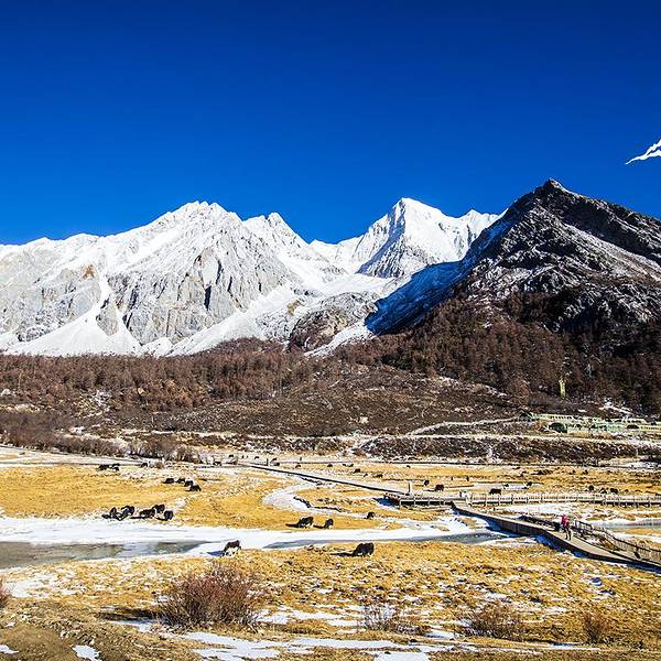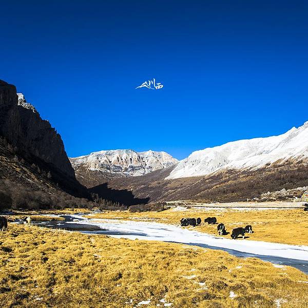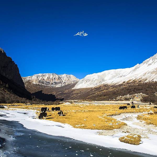 2.洛绒牛场这里被雪山环绕,其中最醒目的就是央迈勇神山,和一个巨大的冰淇淋一样,上面还冒着寒气,因为是冬天去的,所以很多牦牛都回家了。草也变得黄黄的,可是还是很美。