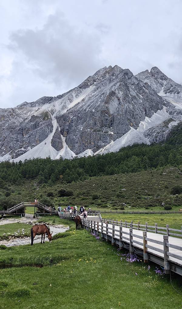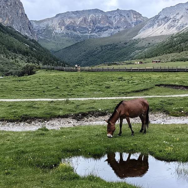 考虑高反和身体原因,我晚点动身去洛绒牛场。盆底便是一片高原草甸,风景极美。两边以栈道相接次日,老婆一人7点多钟先出发,去牛奶海和五色海。考虑高反和身体原因,我晚点动身去洛绒牛场。乘大巴到终点后,步行20分钟到冲古寺站再乘电瓶车抵达洛绒牛场时,已近11点半钟。老婆去牛奶海还在等待骑马,我正好...次日,老婆一人7点多钟先出发,去牛奶海和五色海。考虑高反和身体原因,我晚点动身去洛绒牛场。乘大巴到终点后,步行20分钟到冲古寺站再乘电瓶车抵达洛绒牛场时,已近11点半钟。老婆去牛奶海还在等待骑马,我正好赶上,为她抓拍了几张骑马照片。