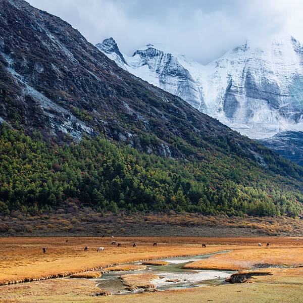 洛绒牛场是亚丁景区内著名的景点,海拔4150米,是附近村民放牧的高山牧场,成群的牛羊在这里享受...洛绒牛场被“日松贡布”三座神山环绕,贡嘎河从草场穿梭,林间溪流潺潺,与牧场木屋交相辉映。秋天草地金黄,与雪山、河流构成了一幅原始而又迷人的风景画,让人返朴归真。洛绒牛场是亚丁景区内著名的景点,海拔4...洛绒牛场被“日松贡布”三座神山环绕,贡嘎河从草场穿梭,林间溪流潺潺,与牧场木屋交相辉映。秋天草地金黄,与雪山、河流构成了一幅原始而又迷人的风景画,让人返朴归真。洛绒牛场是亚丁景区内著名的景点,海拔4150米,是附近村民放牧的高山牧场,成群的牛羊在这里享受着充足的阳光、青青的草地和纯净的湖水。雪峰、森林、草场、溪流、湖泊、瀑布和牧场木屋构成了一道美丽的田园风光。 展开