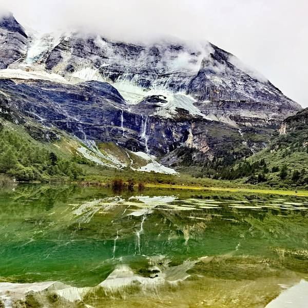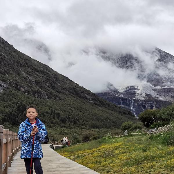 我本打算早点到洛绒牛场租两匹马骑上山节省点体力的,也好兑现了前两天答应儿子让他再骑马的诺言,但这里的马实在太抢手了,估计都要提前预订,我们到达驿站的时候一匹马都没有了。“马没落地行”,我们只有步行上山了,幸好从这里开始风景已经是无比惊艳了,骑马反而无暇欣赏。我们一路走一路拍,几乎是走两步就要停下来拍一下。在这里已经可以看到面前有一座雪白的神山矗立在我们面前,这座应该就是传说中三大神山之一的“央迈勇”。由于大雾的原因,神山呈现出“犹抱琵琶半遮脸”的意境,随着雾气的漂移,从不同的角度拍出来都有不同的味道。到达洛绒牛场,这里一头牛都没有,不知道为什么叫牛场?在洛绒牛场远观“央迈勇”洛绒牛场这里一路是木栈道洛绒牛场的风景也是一绝这个翡翠湖的倒影照犹如仙境一般 展开