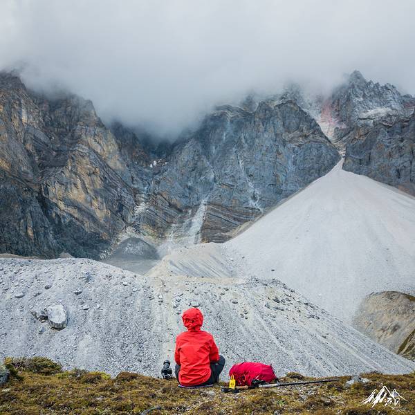 等延时的时候也挺无聊的,就在大风中把御强行起飞,不过运气不好,刚起飞,天上就飘下来了雨点,风力也超过御的承受能力,只给自己来了这张自拍就赶紧收拾家伙下撤。晚上云层太厚,我就早早的钻进了帐篷烘烤下山时淋湿的速干裤。后来小齐来我的帐篷旁问我“怎么不出来拍星星啊?”。