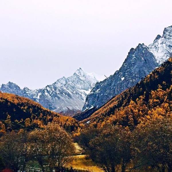 2、推荐在洛绒牛场摄影,这里长满了灌木丛,秋天的时候一片通红,还有漫山遍野的金色,颜色丰富多彩。
