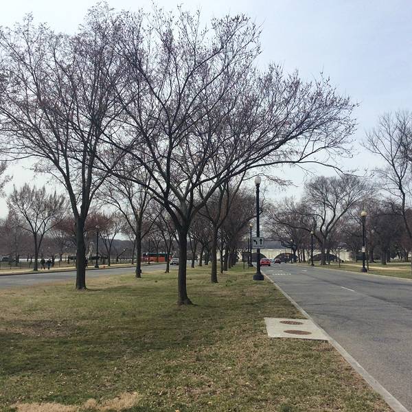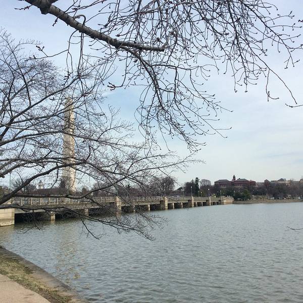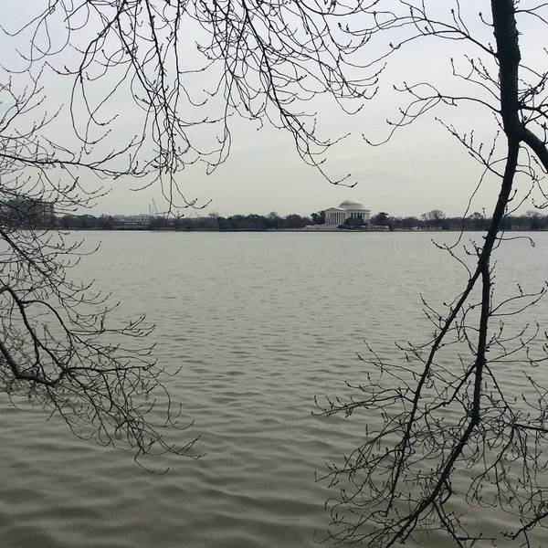 本人取得时候是三月的最后一周,但可惜只有零星的花骨朵,还没有开放,但是隐隐约约已经有几分樱花的颜色了,散步在樱花树下的湖边小路,远望湖对面的杰佛逊纪念堂,感觉还是很惬意滴。