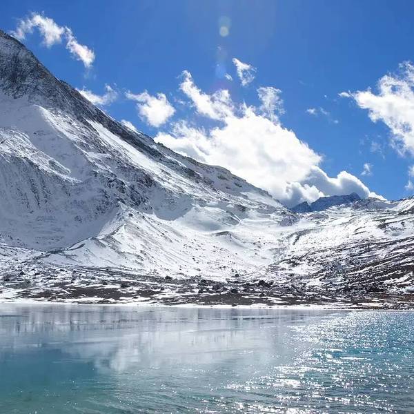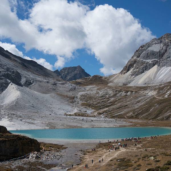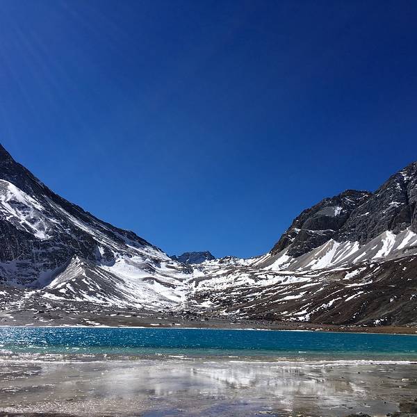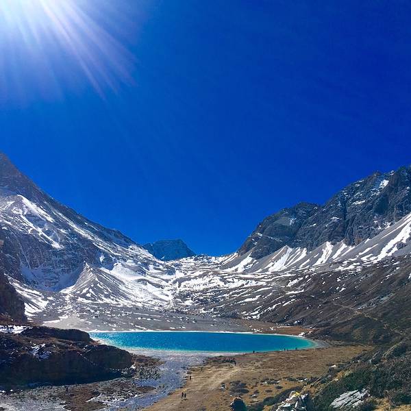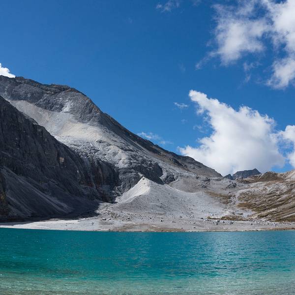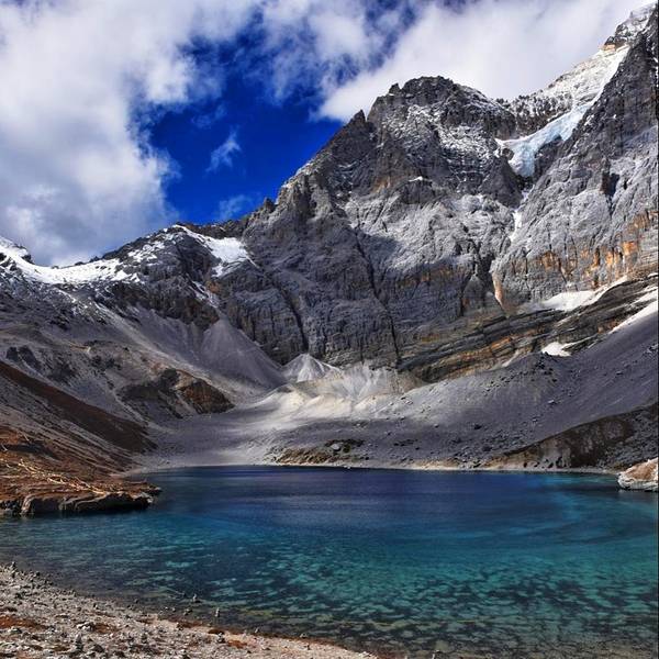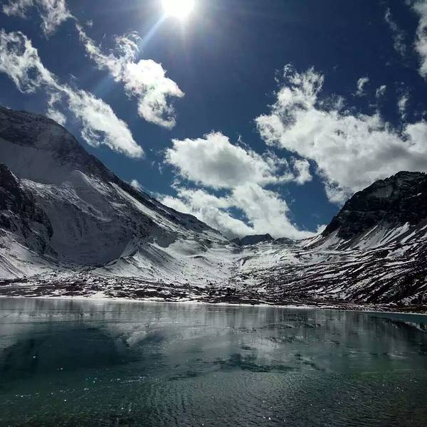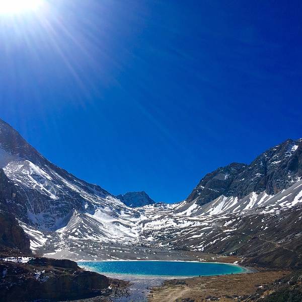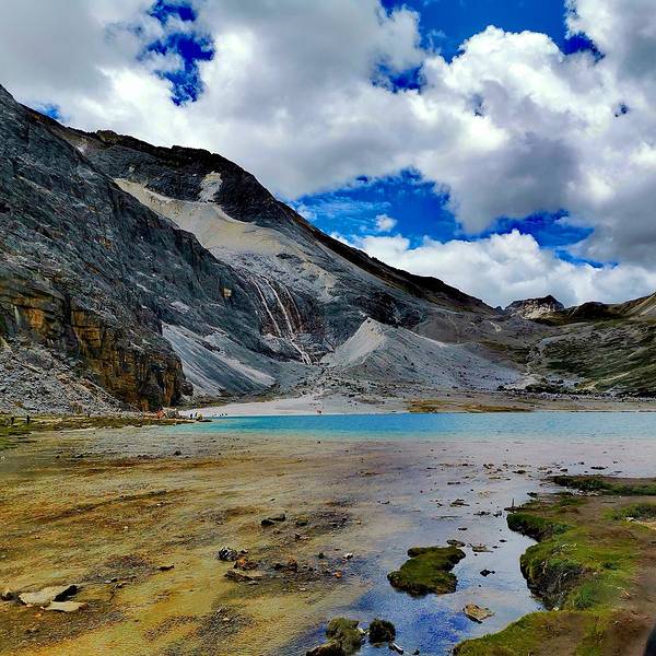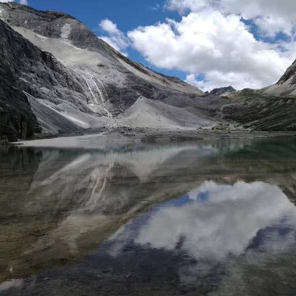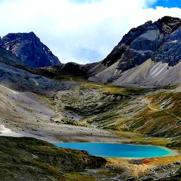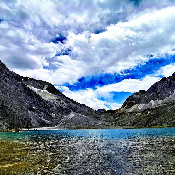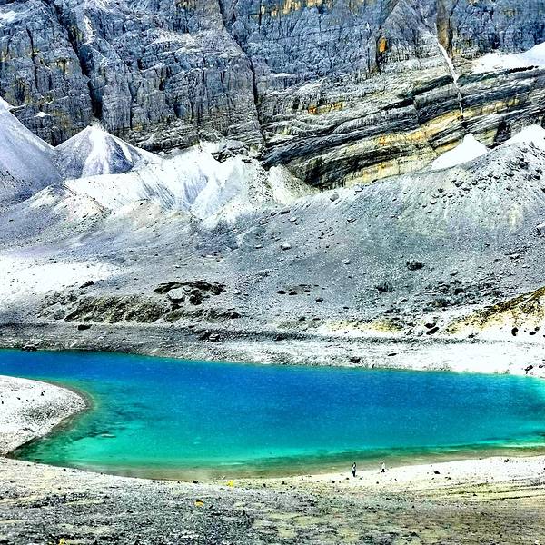 美丽的一切都需要付出代价,当你拥有它的时候,你就会觉得一切都值了!眼看它,好美,山水画一般“牛奶海,又叫洛绒措,在央迈勇的山坳里,呈扇贝形,中间是碧蓝的雪水,周边则是一圈乳白色环绕,这圈乳白色大致就是牛奶海名称的由来。”