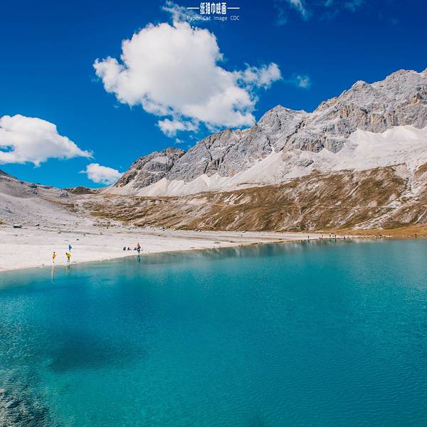3.一路上加油鼓气,大家来到了这里。牛奶海其实是一个湖泊,因为湖水中间有白色的一圈像奶所以这样取名。