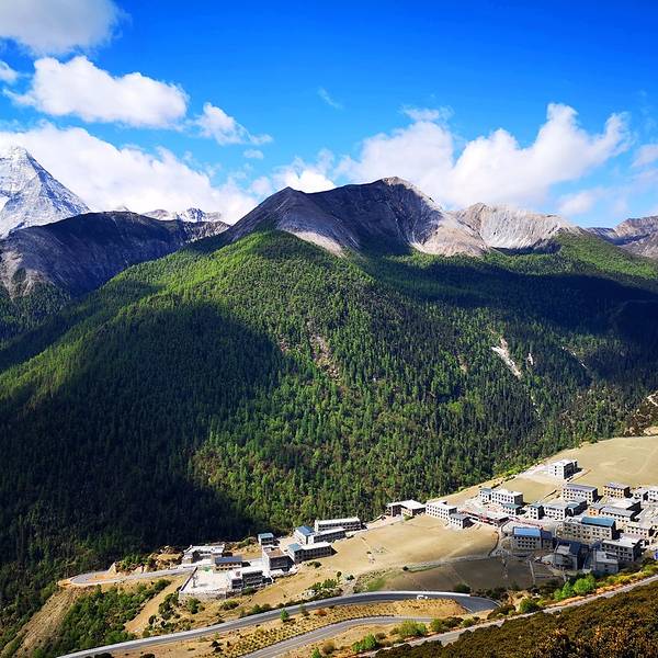 今天有我要去长线,所以需要早早的起床,车程10多分钟就到了亚丁景区停车场,停好车后小马师傅就带我们去景区售票中心拿票,然后前往游客中心等着大巴车载我们上山,大巴车上山大概一个小时,中途会在亚丁村观景台停车,这里远远的就可以看见仙乃日和夏洛多吉,下面被群山环绕着,有很多小房子的平地就是亚丁村。从这里看亚丁村, 亚丁村是很美丽的,周围就是雪山和森林,好似世外桃源的存在,但是这里海拔比较高,住宿条件也很一般,所以我还是觉得住在香格里拉镇比较不错下来大巴车步行一段路继续坐车前往洛绒牛场,当然这次是换乘的小型观光车洛绒牛场,远远的就可以看见央迈勇, 贡嘎河从草场穿梭,林间溪流潺潺,与牧场木屋交相辉映,构成了一幅原始而又迷人的景色,令人们进入返朴归真的境界。