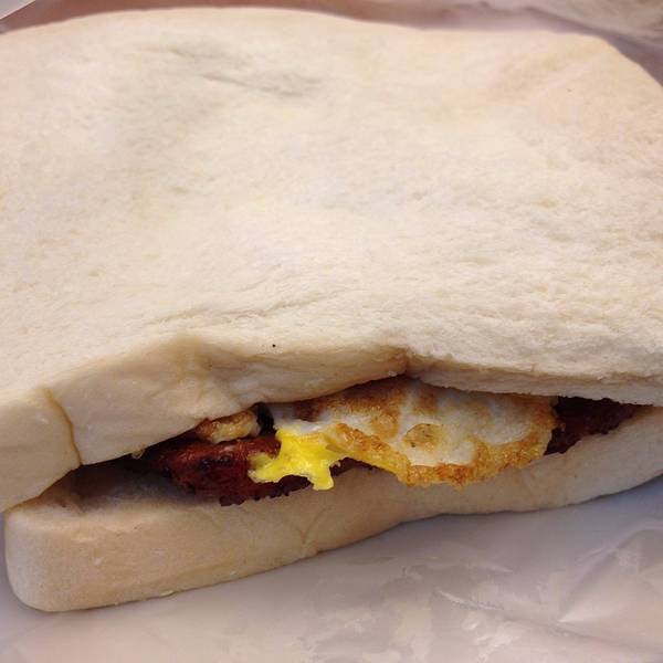 肉蛋吐司」位在健行路上,于1985年开业,迄今已20多年,算算也是个老字号了,不过店面倒是蛮现代化的,装潢也与一般早餐店无异,但因为是开放式的店面,没有冷气,在夏天显得有些闷热。店内餐点有西式的吐司、色拉以及中式的蛋饼、萝卜糕、锅贴等,另外还提供冷热饮及单点的煎肉片、火腿及葱蛋等。店内吐司与一般早餐店的有所差异,上桌的吐司皆保持原貌、未经烘烤,原因是店家认为柔软的吐司与招牌肉片最match。吐司中间夹上招牌肉片与煎蛋,并以美奶滋与胡椒调味,一口咬下,里肌肉片咸香软嫩,搭配香甜美奶滋与柔软吐司,顺口而对味。网友推荐「碳烤三明治」:炭火烤吐司、猪油嫩蛋、清脆黄瓜丝、火腿和美乃滋的组合,口味更胜一筹啊!