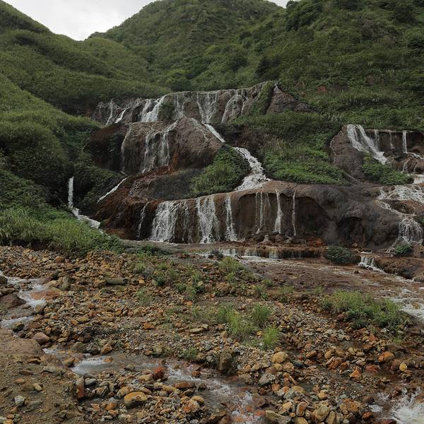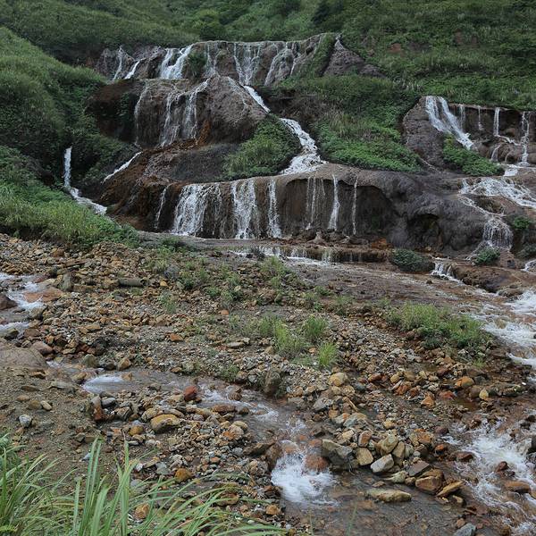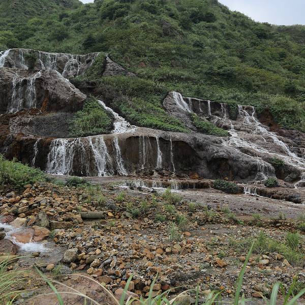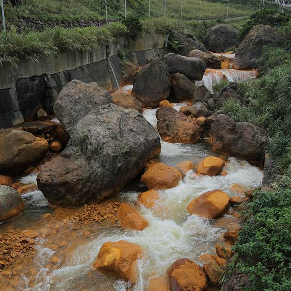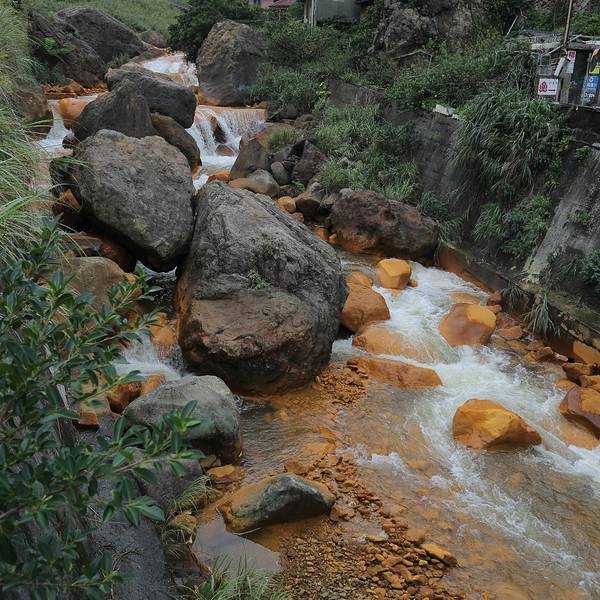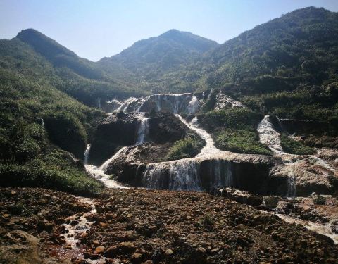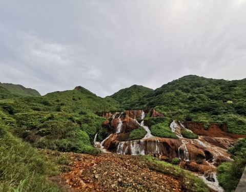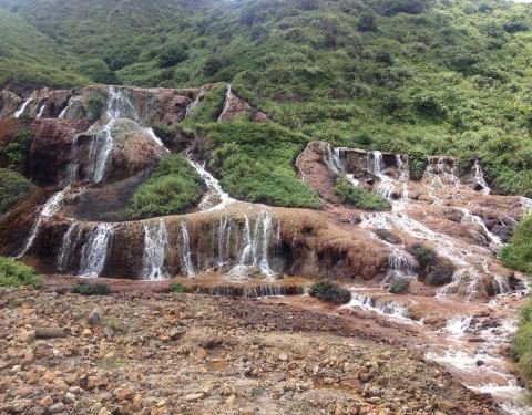 ...看着那颜色加上那水声,其实比想像中还好,除了瀑布周边都是青翠的原始小山相伴,也算是有特色的地方黄金瀑布长年以来因重金属类矿砂沉积溪床作用之下,因此水质氧化而形成奇特的金黄色瀑布景观,当地居民就将这里称为黄金瀑布。 瀑布岩石旁边的小碎石都有点橘色,原因为当年采矿的时候,长年金属矿产的沉积,经雨...黄金瀑布长年以来因重金属类矿砂沉积溪床作用之下,因此水质氧化而形成奇特的金黄色瀑布景观,当地居民就将这里称为黄金瀑布。 瀑布岩石旁边的小碎石都有点橘色,原因为当年采矿的时候,长年金属矿产的沉积,经雨水渗入后流出,让金瓜石瀑布有重金属砷污染,所以来这边看瀑布就好,千万千万不要碰,以免被腐蚀。在结束九䄎份老街美食之行后,顺便前往黄金瀑布,从这一路上九弯十八拐,最终看见在山凹的一个瀑布,就是黄金瀑布了。这里地质饱含金属,所以河水颜色就变成这样,且这瀑布跟一般正规瀑布不太一样,是一层层流下来,看着那颜色加上那水声,其实比想像中还好,除了瀑布周边都是青翠的原始小山相伴,也算是有特色的地方。 展开