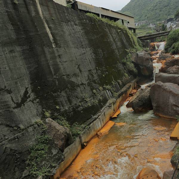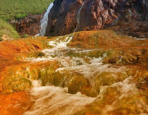 黄金瀑布及阴阳海黄金瀑布为本山六坑及长仁五番坑坑口流出的矿水汇集而成的景象黄金瀑布及阴阳海黄金瀑布为本山六坑及长仁五番坑坑口流出的矿水汇集而成的景象。金黄色的矿水将经的土石染成金黄、金红色,行成黄金瀑布的特殊景象。从自强桥旁往上看,可以看到从山上倾泄而下,再山势分成数道...黄金瀑布及阴阳海黄金瀑布为本山六坑及长仁五番坑坑口流出的矿水汇集而成的景象。金黄色的矿水将经的土石染成金黄、金红色,行成黄金瀑布的特殊景象。从自强桥旁往上看,可以看到从山上倾泄而下,再山势分成数道状似瀑布的水流,但金瓜石矿山停采已超过10年,阴阳海依然存在。 展开