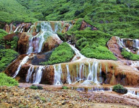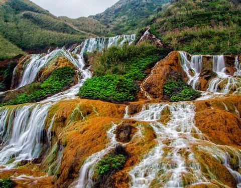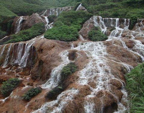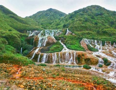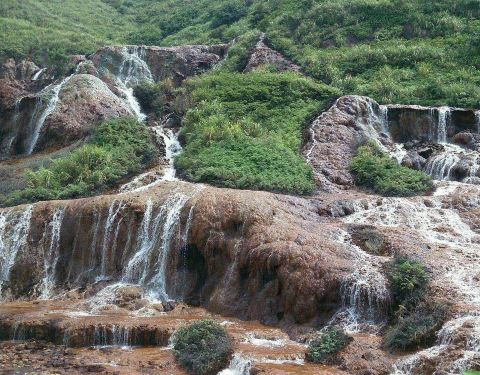实用 个人推荐,沿着瀑布向下游走,不但可以附近的阴阳海和水湳洞冶炼厂遗址,还可以看到下游的水更多更金黄黄金瀑布最壮观的景象并不在瀑布本身,而是在于瀑布的水流过的溪流,在下游看到的水真的很金黄。【景点简介】由于早期于瀑布小溪上游,为採铜矿之处,长年来因重金属类矿砂沉积溪床作用之下,使其水质氧化而形成...黄金瀑布最壮观的景象并不在瀑布本身,而是在于瀑布的水流过的溪流,在下游看到的水真的很金黄。【景点简介】由于早期于瀑布小溪上游,为採铜矿之处,长年来因重金属类矿砂沉积溪床作用之下,使其水质氧化而形成奇特的金黄色瀑布景观,当地居民将其称为“黄金瀑布”。【环境评价】黄金瀑布位于半山腰的公路边,瀑布的水在山上是没有明显溪流的,但是在黄金瀑布突然聚集形成一条10来米款的小瀑布。因为铜矿而染成金黄色的溪水和石头,在茂盛的山林间,黄绿相映,景象很好看。不过,瀑布水量很小,不算壮阔。个人推荐,沿着瀑布向下游走,不但可以附近的阴阳海和水湳洞冶炼厂遗址,还可以看到下游的水更多更金黄。【特色推荐】金黄色的石头和瀑布【开放时间】全天【地址】复兴村与梅兰村之间(在南横公路旁)【交通】九份出发:在黄金博物馆门口搭乘黄金博物园区826公车,黄金瀑布站下车。基隆出发:从基隆搭往金瓜石的基隆客运、福和客运,于九份下车。台北出发:国光客运台北西站:台北(往罗东、宜兰)→ 基隆 → 东北角海岸 → 于水楠洞下车【门票】免费【周边景点】黄金瀑布、阴阳海和水湳洞冶炼厂遗址可以安排在一起游览,先到黄金瀑布,然后从瀑布沿着盘山公路往下走15分钟,就可以到其余景点。十三层遗址:台金公司金铜事业的办公室厂房及各种矿业遗迹。阴阳海:出海口的奇观。 展开