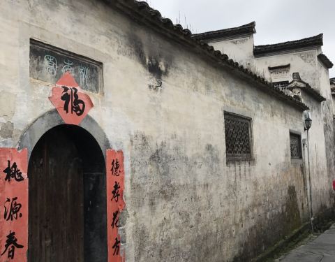 桃李园建于清咸丰年间,由正屋和庭院组成,系西递徽商胡元熙的旧居兼私熟蒙馆。二三进之间用粉墙相隔,中间有门相通,门上有隶书"桃花源里人家"石刻横额。在通往街面的小门上,石刻有小篆"...4点44分,来到桃李园。