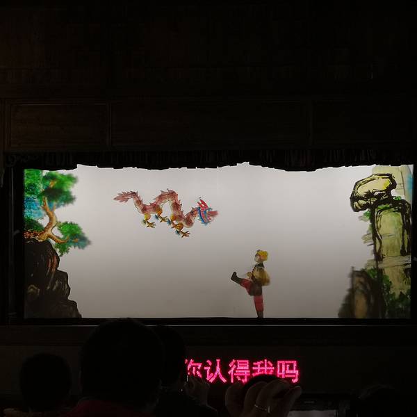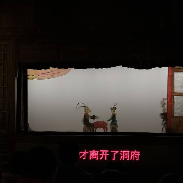 很惊叹艺术家们的表演,声影结合,活灵活现的表现出孙悟空的一个跳跃一个跟斗走出东栅,在修真观里面就有皮影演出,地方不大,观众不少。很惊叹艺术家们的表演,声影结合,活灵活现的表现出孙悟空的一个跳跃一个跟斗。走到一侧也可以看到后台的演员,很赞!