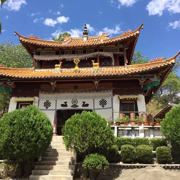 寺庙始建于公元1634年,1989年重建,寺里供有佛祖释迦牟尼、观音、千手千眼佛、藏传佛教格鲁派宗师宗喀巴及其二弟子佛像、护法神等诸佛塑像,每逢藏历节日或佛教节庆,沿湖的信教群众都会到这里来祈福拜谒,香火鼎盛,十分热闹。另外,岛上还有一座白塔,为永宁摩梭土司府总管阿云山的灵塔,阿云山曾是滇、川、藏地区赫赫有名的摩梭政坛人物。