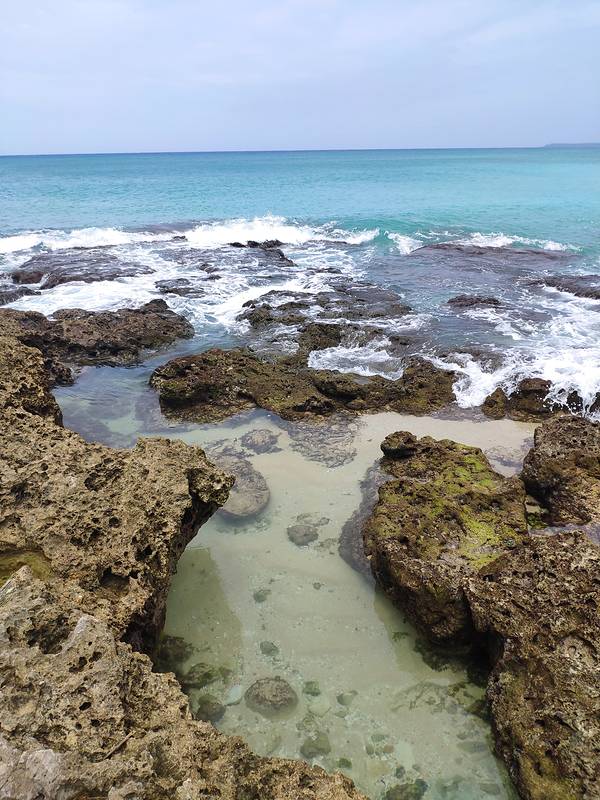 虽然说东线景点很多,不过我们并没有按照固定的东线景点挨个游玩,而是看上哪里漂亮就停下来去玩耍一会,所以透蓝清澈的砂岛一眼就被我们相中啦~~ 砂岛背靠的这片海水区域,颜色层次分明,特别辽阔,外围有很大一片凹凸不平的珊瑚礁石,即使穿着鞋子有些也挺咯脚的,越靠近海水那边缝隙越大,大家小心不要掉东西进去。几乎路过这里的游客都会坐在珊瑚礁石上面拍拍照。右边是全台湾唯一的贝壳沙滩,都用铁纱网为起来了,不允许进入的看起来那些沙子特别细软,这还有一个贝壳展览馆,有兴趣的亲可以去看看~~ 展开