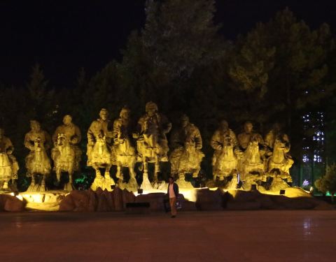 成吉思汗广场,位于呼伦贝尔首府海拉尔东部,距离海拉尔机场仅几公里,是居民晚上遛弯的好地方,广场...成吉思汗广场,位于呼伦贝尔首府海拉尔东部,距离海拉尔机场仅几公里,是居民晚上遛弯的好地方,广场面积比较大,灯火通明,是这次呼伦贝尔之行的最后一站。