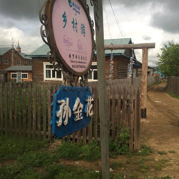恩和去过两次,每次都住孙金花家,那时候还没有什么评价, 只能靠无敌的百度晒出来所有评论,点击率最高的就是孙金花家,最终选择的原因,是有人说他家的菜做的好吃。恩和是呼伦贝尔地区的一个俄罗斯族的村落,隶属于室韦乡,俄罗斯族大多聚集在附近。俄罗斯族到我们看到的一代,有很多都是俄罗斯族跟汉族,或者俄罗斯族跟蒙古族的混血,外表是外国人的样子,说着一口流利的普通话。不过房子跟食物却还保留了很多俄罗斯的习惯。 这家的房子是木刻楞,不过也是改良过后的,非全木质结构,大多数是砖混结构,外面钉上桦木,再刷上鲜艳的颜色。房价30每人,如果包车的话司机住宿是不用管的,住宿地方提供,这也算当地的一个不成文的习惯了。 老板人很好,本来有次都已经去别的地方,后来赶了200多公里还是回去住,老板高兴还跟我们喝酒,那感觉就像是久违的朋友。 房间按人算,有双人间不带独立卫生间的,30每人,还有标准的带独立卫生间的价格200,第二次去的时候标准间是新盖的,很新,里面设施也还不错。其实不带独立卫生间也很方便,他家的卫生间很干净,是有上下水有瓷砖的那种。还有土桑拿,10块每位,以前是在后院一个简易的房子里,后来修在了洗手间旁边,环境好了很多,晚上洗澡要排队,热水烧一大锅,然后兑着凉水用水舀子冲凉,也挺方便。 孙家能容纳50人,餐厅也有好几个,可以管饭,按位算钱,早餐15,正餐25,肉素结合,有什么要求可以具体提,可以调整,最招牌的要算俄式煎牛肉饼土豆了,其他菜跟我们家常东北菜有点类似。门口招牌,孙金花是老板娘的中文名字,她很亲切,第一次我们两个姑娘自己去玩的时候,她特意出来送我们,叮嘱我们注意安全,那感觉,亲切的不要不要的。门口最大的那一间房子,标准的木刻楞,最外面的花园里还有秋千。房子上的动物装饰,这附近离大兴安岭比较近,所以鹿还是很容易找的。鹿角装饰的挂架工具房,男主人会做很多手工这是家里的一只大狗,一共两只,这只敦厚一些,还有一个特别活泼,比较喜欢缠着人,还会把别人给的食物都偷偷藏起来,在各个角落都有它藏起来的食物木栅栏,院子里到处都是花我们房间里的装饰品,到处都是小碎花,墙壁比较简陋墙面用油画装饰,屋子里也摆着花这是最出名的牛肉饼,叫葛得列克,煎牛肉饼煎土豆的合集,挺好吃的,牛肉饼调味不错。奶茶,内蒙特产,这是建议的版本,用红茶跟自家牛奶煮开之后就变成了美味的奶茶。炖豆角,比较东北口味凉菜,可能外国人会叫这个沙拉面包果酱,这是我的最爱,面包师对面热尼亚面包房出品的,味道很好,当地叫列巴,刚出锅的底部还带小糖粒的最好吃,蓝莓果酱也是自制的,最销魂的还是那一碗西米单,每顿都要多加一份,那是每天吃饭的精髓。炒豆腐泡