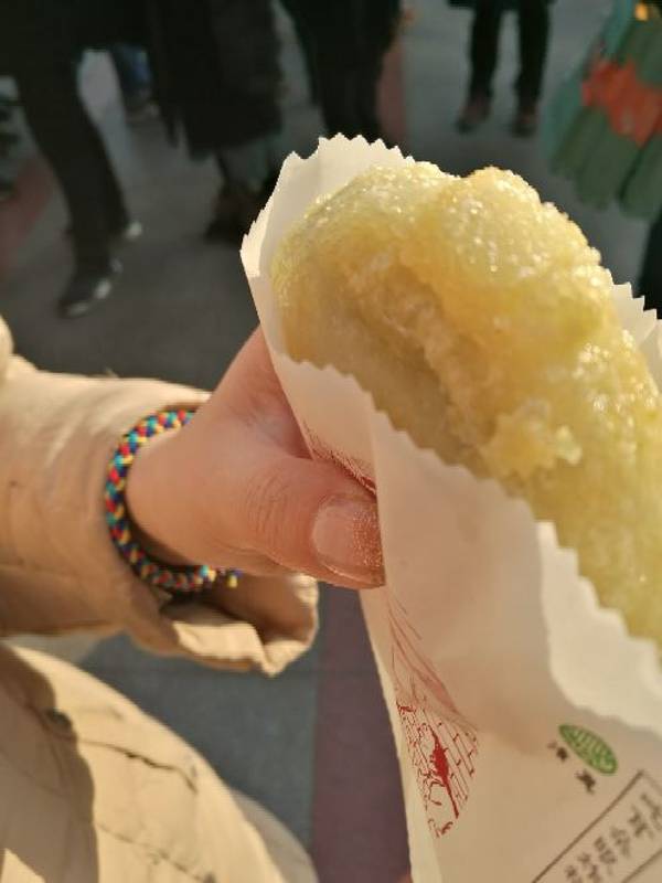 ...子包子实在吃不下去了,侧面的耳朵眼炸糕买一个尝尝,还排了一会儿队,刚刚炸出来的炸糕还是很好吃滴