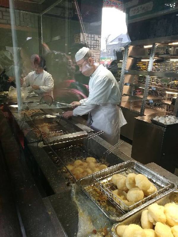 老远就能看到这高大上的耳朵眼会馆,其实很想去点个清真菜尝尝的,一肚子包子实在吃不下去了,侧面的耳朵眼炸糕买一个尝尝,还排了一会儿队,刚刚炸出来的炸糕还是很好吃滴!