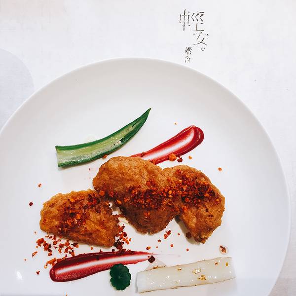 【轻安素食馆】 地址:武侯区高新区天府一街铁像寺路88号铁像寺水街4-1号(人均:128元/人) 套餐是128元/人 第二家,是我最近才去吃的,过年了即将大鱼大肉的日子,去品尝一下素食的甘甜平衡一下。这家店是是集素食馆、家品馆、图书馆和一期一会的雅集跨界组合。极简主义家居名品,手作及瑜伽、花艺、茶会、心灵课程与公益市集。快节奏的都市生活,去那边安静的呆上一天也是不错的选择。这家被评为成都最好的素食馆的,有一个套餐,服务员会一道一大道的上菜,一般我很少吃素食,但没想到如今的素食都做的如此精美,味道还这么棒,其中最让我惊艳的就是【麻婆豆腐披萨】了,创新但又融合,【轻安沙拉】的芥末调汁,把所有蔬菜的味道都激发出来,清香。还有最后一道甜点,火龙果加香蕉的搭配,给餐食划上一个甜美的尾声。各个菜品的摆盘也是非常赏心悦目,一看就是用心做美食的餐厅。 一次非常愉快的素食体验,现代忙碌的生活不是叫外卖,就是压力大到想吃油炸高热量食品,如果你刚好来成都散心,不妨来试试,让食物带着心灵走一趟佛系的旅程。