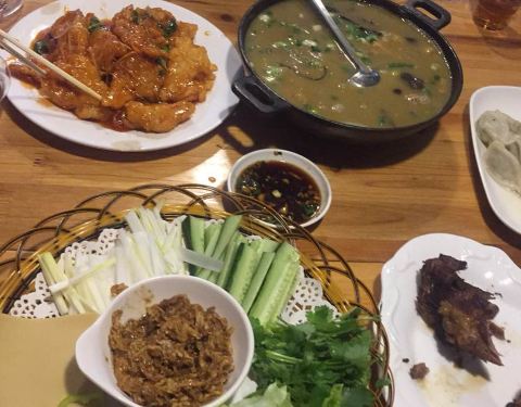 人很多,生意很好,菜煮得很不错。值得去试一下的东北菜,环境都是复古东北装修