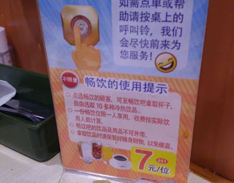 百联这家莎莉亚生意一直很好,每次饭点都要排队,他家东西不错,性价比很高,7元畅饮必点